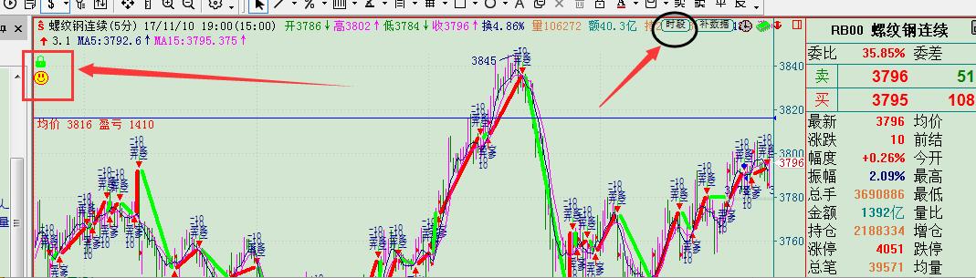 2.  启动图标程序化后,窗格会锁定,目的是不让您无意中切换至别的品种上,当然可以双击绿色锁按钮进行解锁;