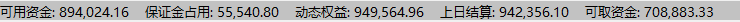 很奇怪的是,电脑刚开机,刚刚登陆账户,显示动态权益 962843.84 我觉得这个数字与我昨天记录的收盘时的动态权益不一致,因此我尝试推出模拟账户重新登陆,这次登陆显示动态权益 949564.96 一下子少了很多。