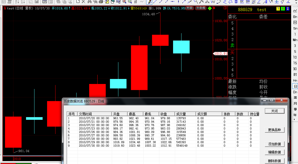 1、您导入的是哪个品种哪个周期的数据呢,导入成功后,是否切换到相应周期查看K线呢?
