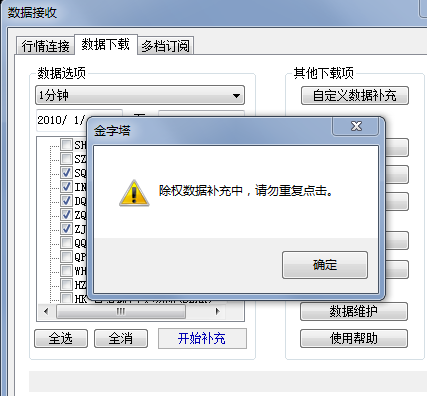 是不是下载不了除权数据?都一个多小时了,一直提示下载中。除权文件很小的。