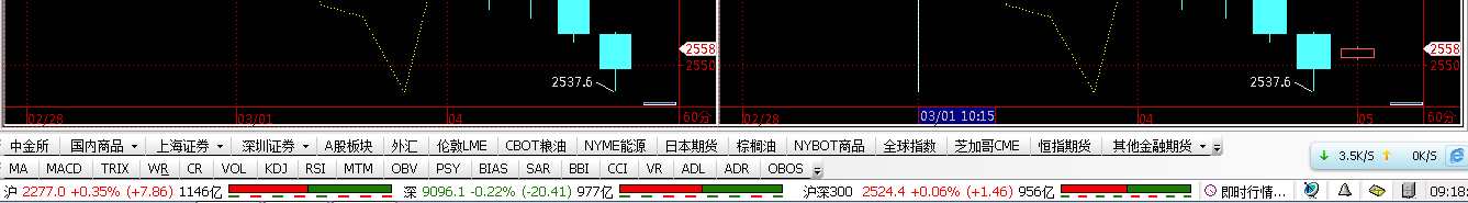 我是一个框架有两个窗口,另一个框架有三个窗口,每个窗口都是同一个标的物IF00,K线显示。每天早盘9:14分显示竞价K线时,总是不能在每个窗口上都全部显示这个集合竞价的K线,大部分情况是至少一个窗口上没有显示出来,有时还会全都没有显示出来,升级到最新的V2.972亦然。当然,一旦9:15开盘后就都能显示出动态K线了。不过曾经发生过开盘以后就一直没有数据更新的情况。不知道V2.97提到修复早盘初始化问题是指哪个情况。