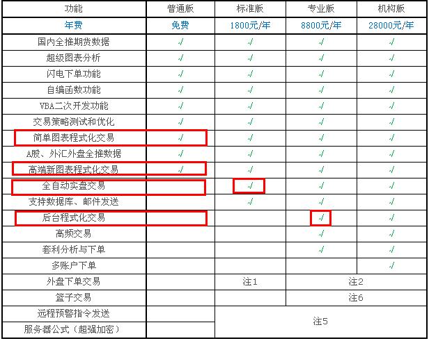 其实第3个“实盘自动化”就是指的图表和新图表程序化交易对吧,简单的说:免费版仅能模拟程序化,标准版了才能实盘图表程序化,对吧