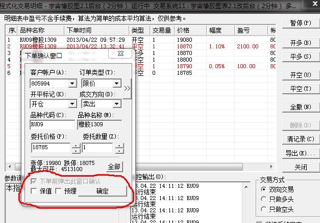 后台的手工开仓,需要用户确认价格及数量的,否则可能会给客户带来损失