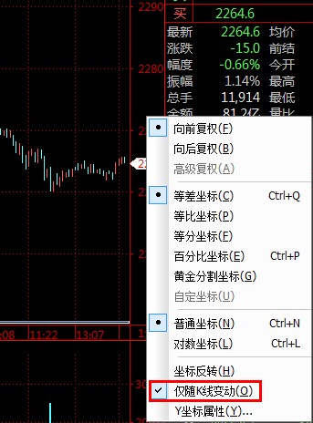 价格坐标轴 点击右键 勾选仅随k线变动