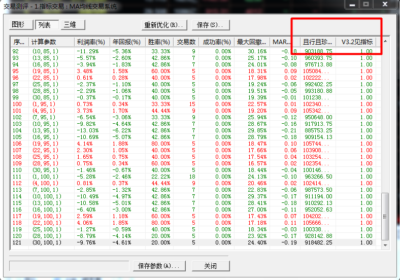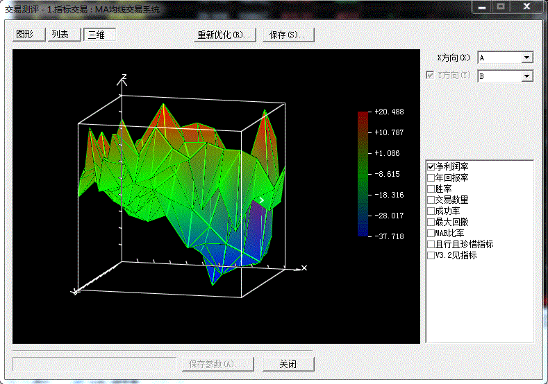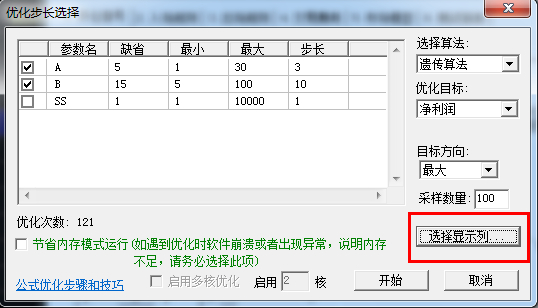 (4)选出组A中最符合要求的参数组合X(即优化目标,例如:优化目标选择净利润  方向:最大)