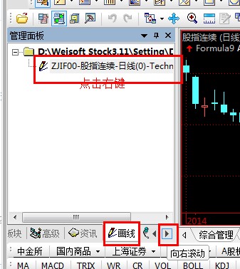 管理面板 点击右下角三角符号找到画线(默认是公式)