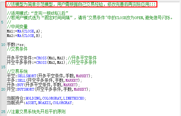 ma均线系统本来就是一个范例,用户需要自己完善。