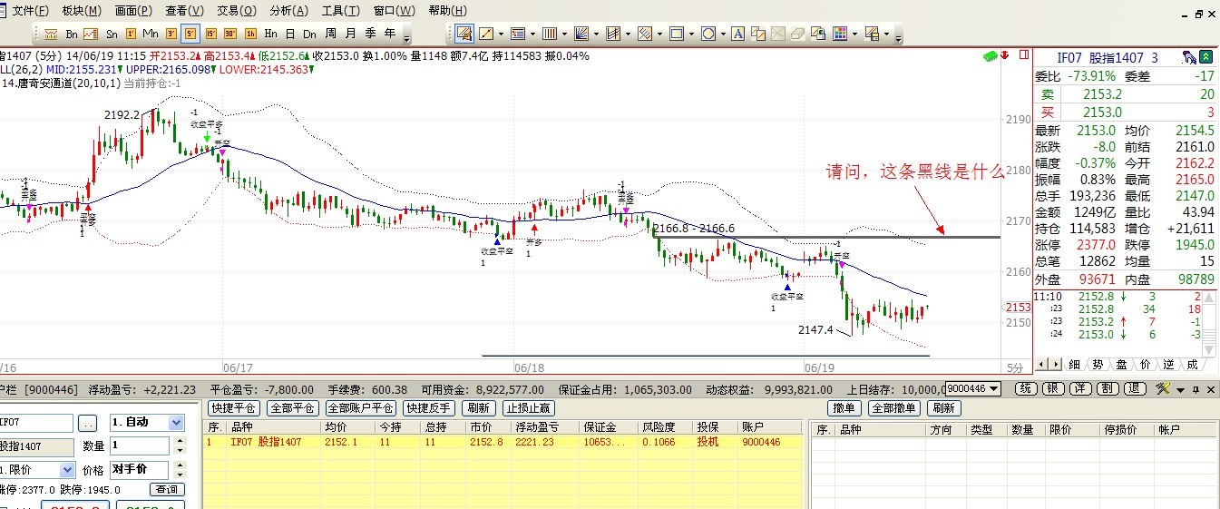 主题:IF1407合约K线之间出现一条黑线,是什么?