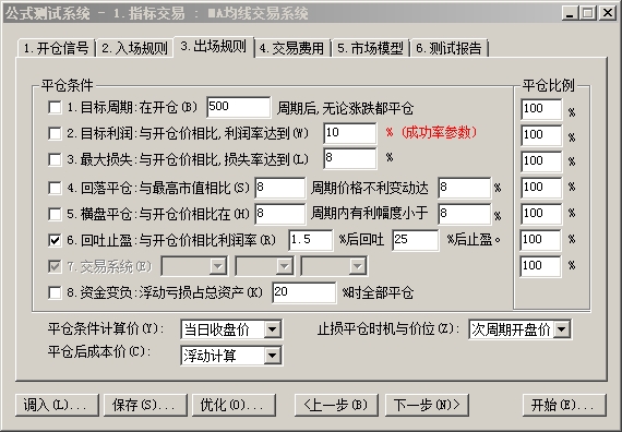 我按照这个设置的条件计算了一下。确实多头时计算回吐止盈是正确的。而空头时是错误的。例如。20140103 13:15开空2291.4;20140106 10:30回吐止盈2241.2.这个和设置的参数计算出的结果不一致。而20140121 15:00开多2202.8;20140123 10:45回吐止盈2242.6的计算是正确的。请帮我解决。谢谢