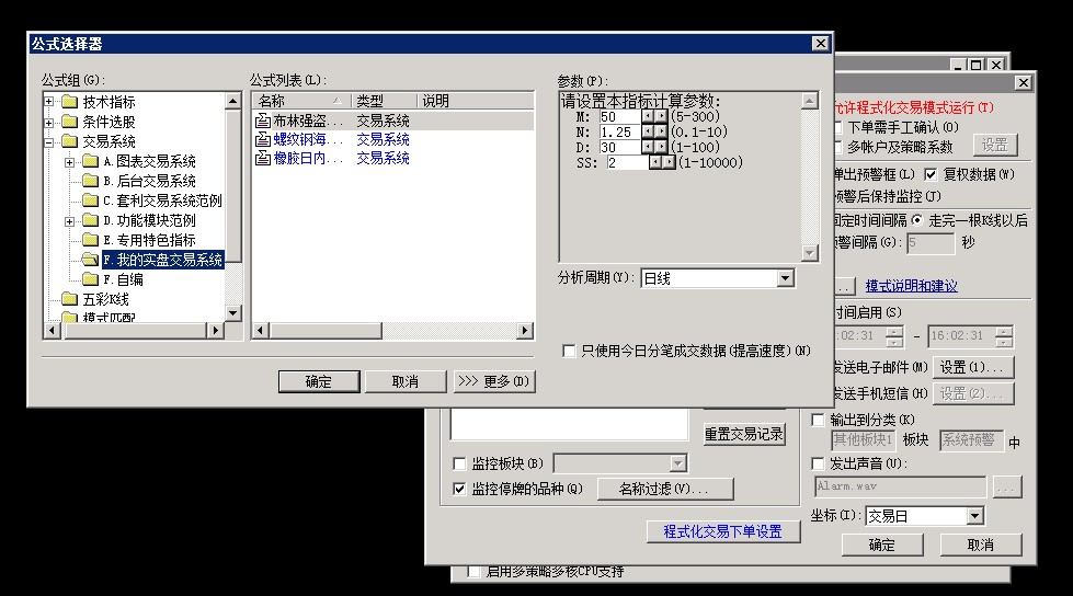 系统自带的布林强盗系统,今天焦炭1405在图表程序化已提示做空。可是在后台程序化选择日线周期,走完一根K线,并没有出现交易。如何修改后台设置?