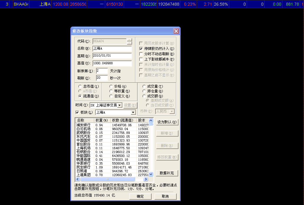 建立两个股本样本等参数基本一样的自定义指数 ,管理面板--板块--自定义指数--板块指数--