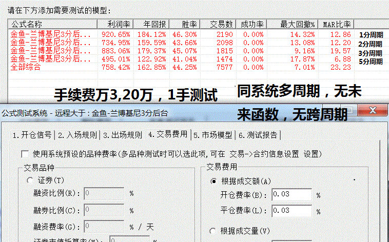我发现大多数贴上来的资产曲线很完美,但由于采用了期货模式进行测试,看客很难客观评估。故建议都用股票双向模式测试。如:股指期货费用=佣金+冲击+滑差,估计在3/万左右(我个人的统计)。